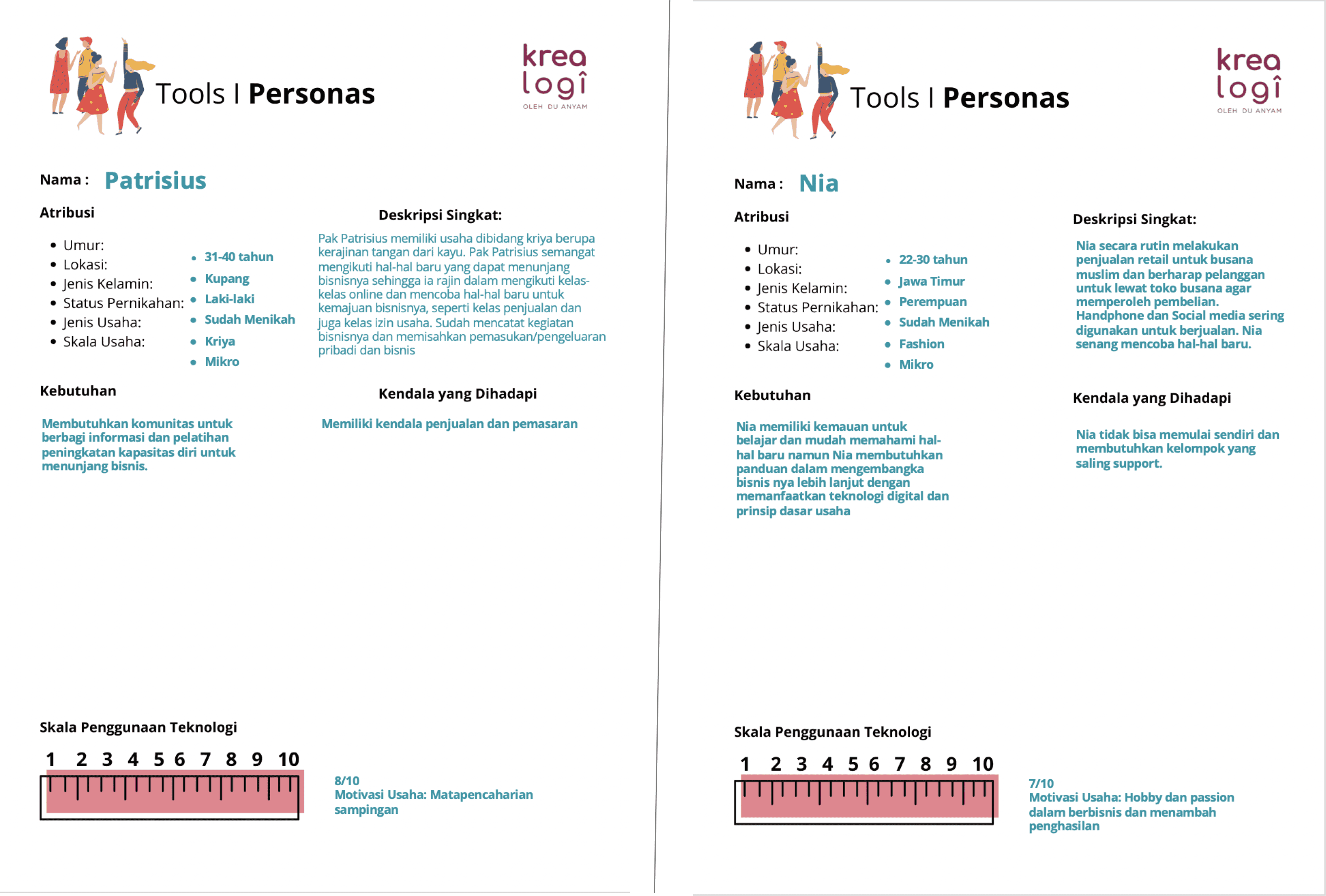 Krealogi provides the community with a comprehensive solution that includes a platform for networking with other business players, training to increase MSME capacities and skills, and user-friendly tools for recording operational activities and making strategic goals. Du Anyam understands the restrictions of MSMEs in order management, manufacturing, inventory, and delivery based on his experience running MSMEs craft since 2015.