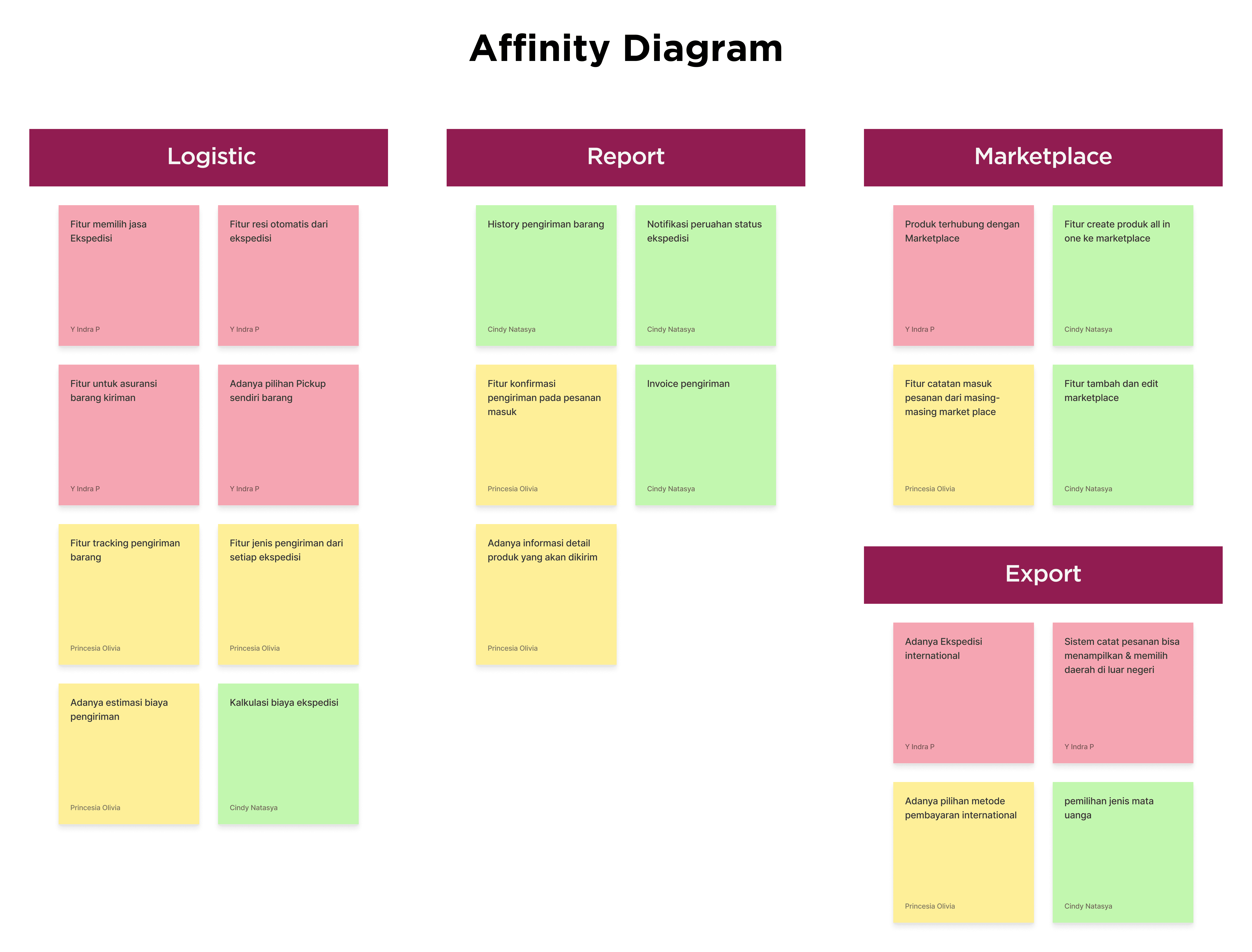 From the Affinity Diagram above, it can be seen that there are several solutions we offer, ranging from Logistics, report, marketplace to export shipping feature that we think can answer the HMW question.