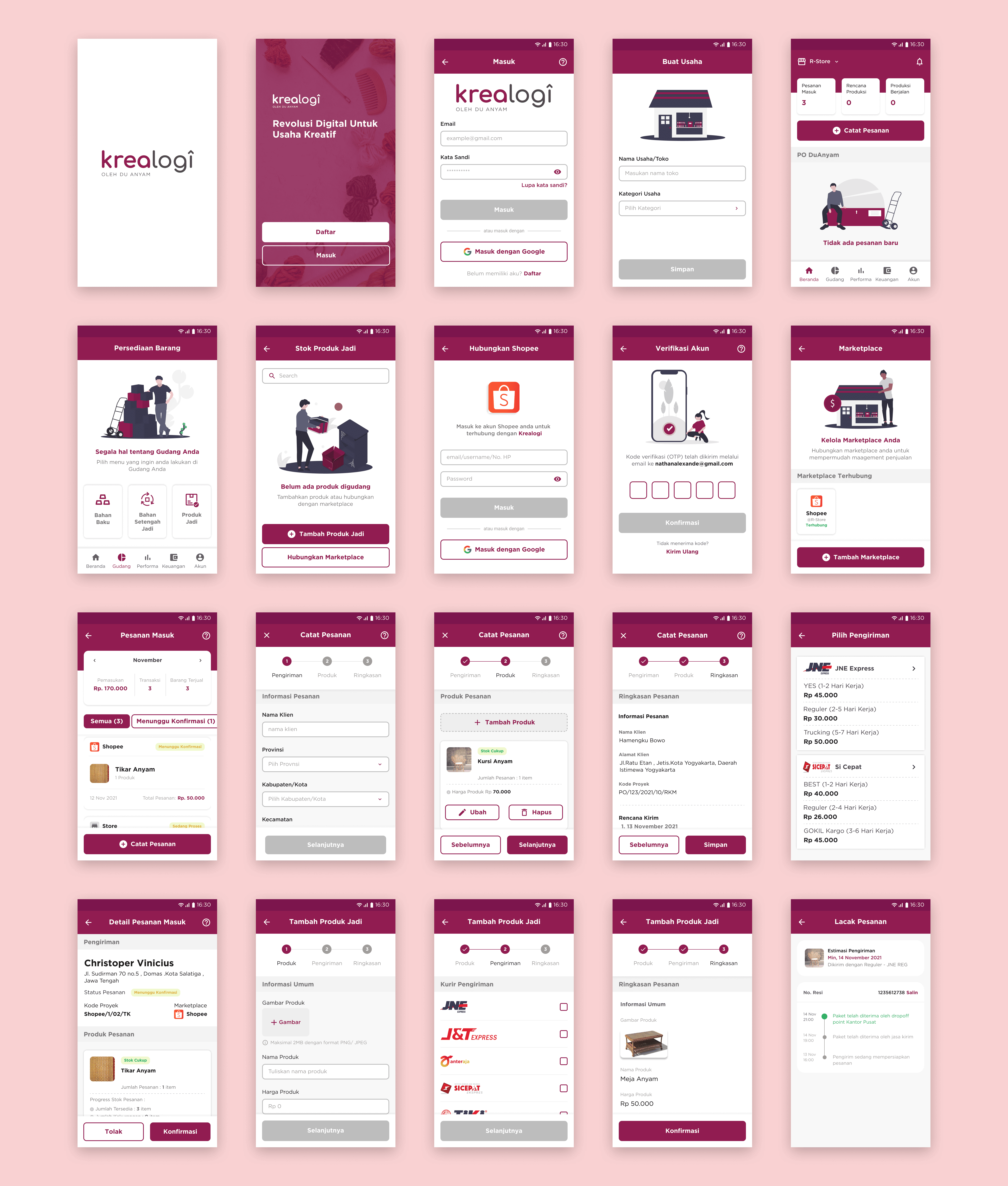 Vendors, Producers, and Sellers are the three types of Krealogi users. Users that desire to sell weaved products through the Du Anyam platform and other online platforms are known as vendors and merchants. Producer, on the other hand, is a production actor. However, Krealogi’s present issue is that their target users don’t have a user-friendly application design. Krealogi currently requires a user-friendly application design that can allow Krealogi users record their operational actions, build strategies, and maintain their operational flow.