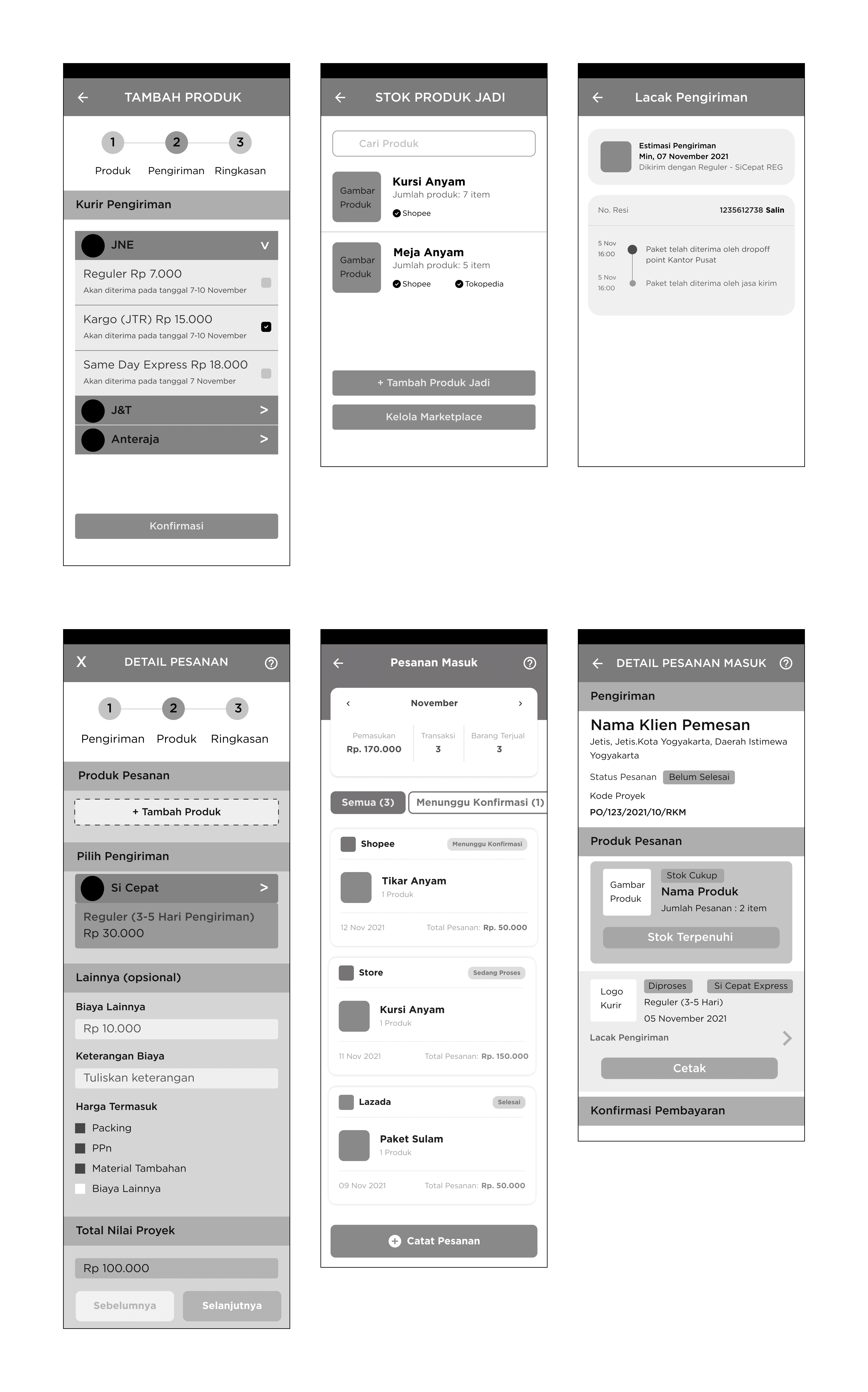After finishing the UI design process, I use Figma to make a prototype and add interactions. We were also concerned about how consumers react to integration features with logistics and marketplaces, so we opted to include micro-interaction with a dash of animation to engage the user experiences.