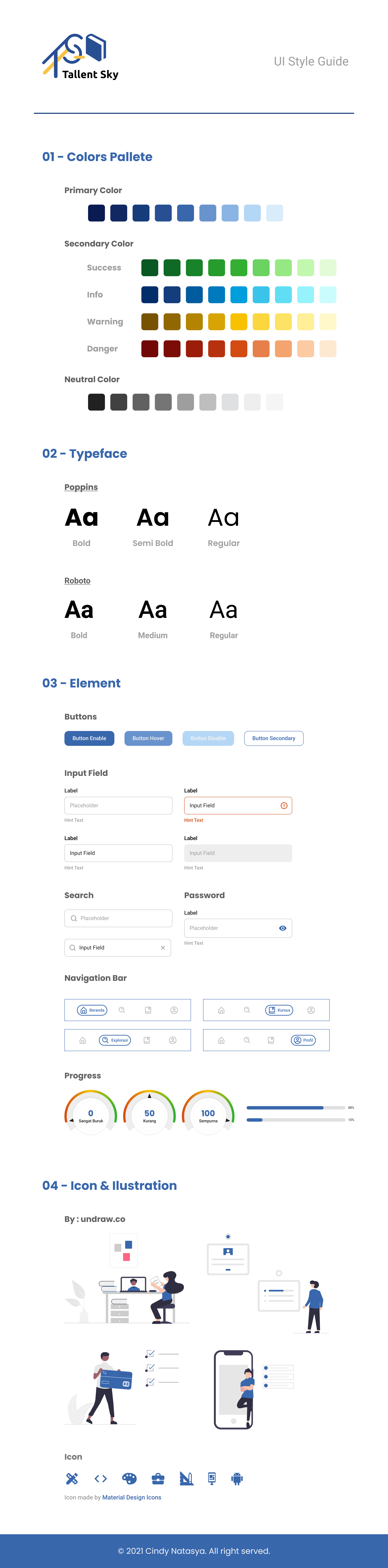 Here is the UI Style Guide that I use on the high-fidelity interface of this Tallent Sky platform.
