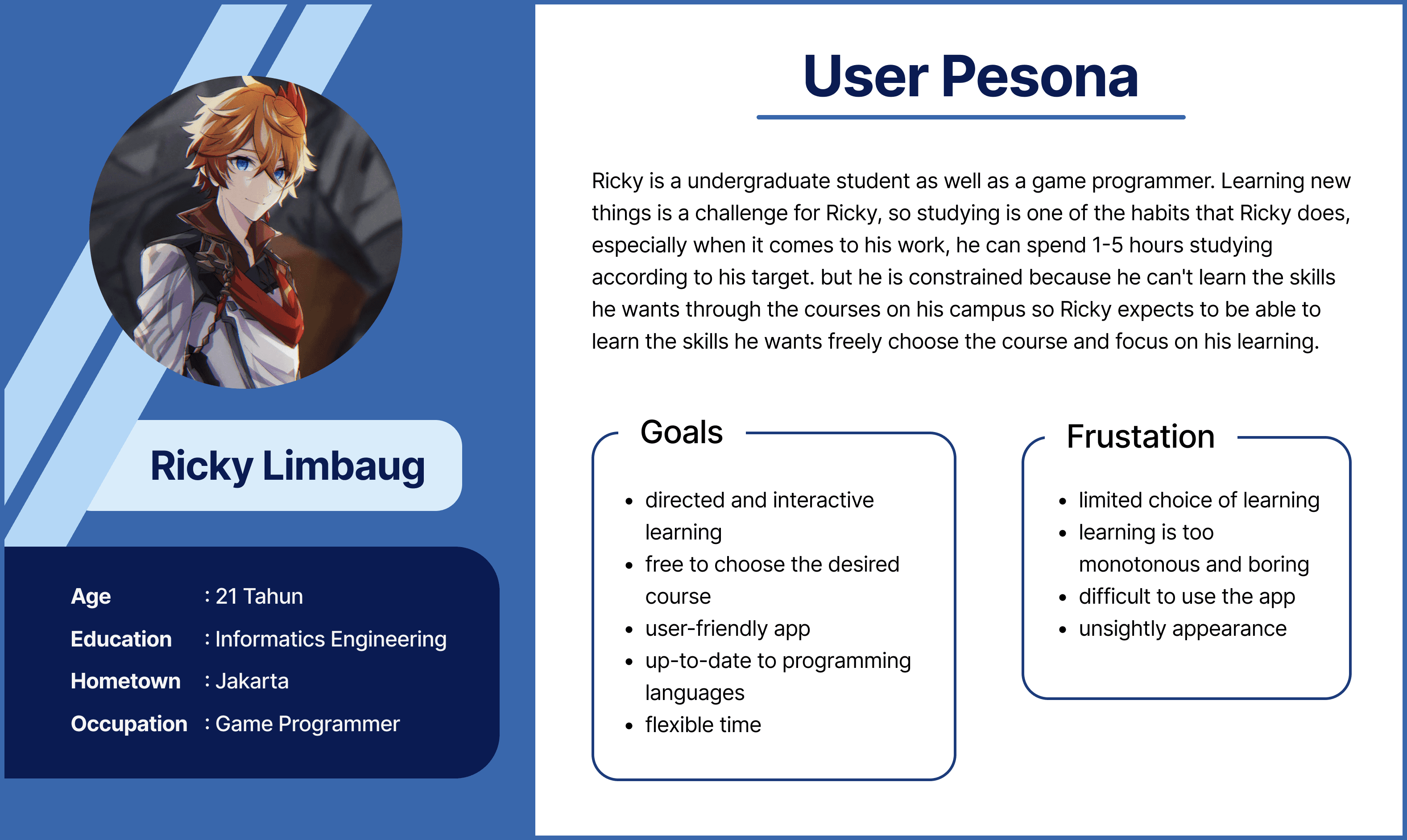 Then after conducting the interview, as part of processing the research findings, I analyze the information that was found on the research phase by creating a User Persona. This persona will contain the details of user’s goals, frustrations, and also other information that might be useful in the design process.