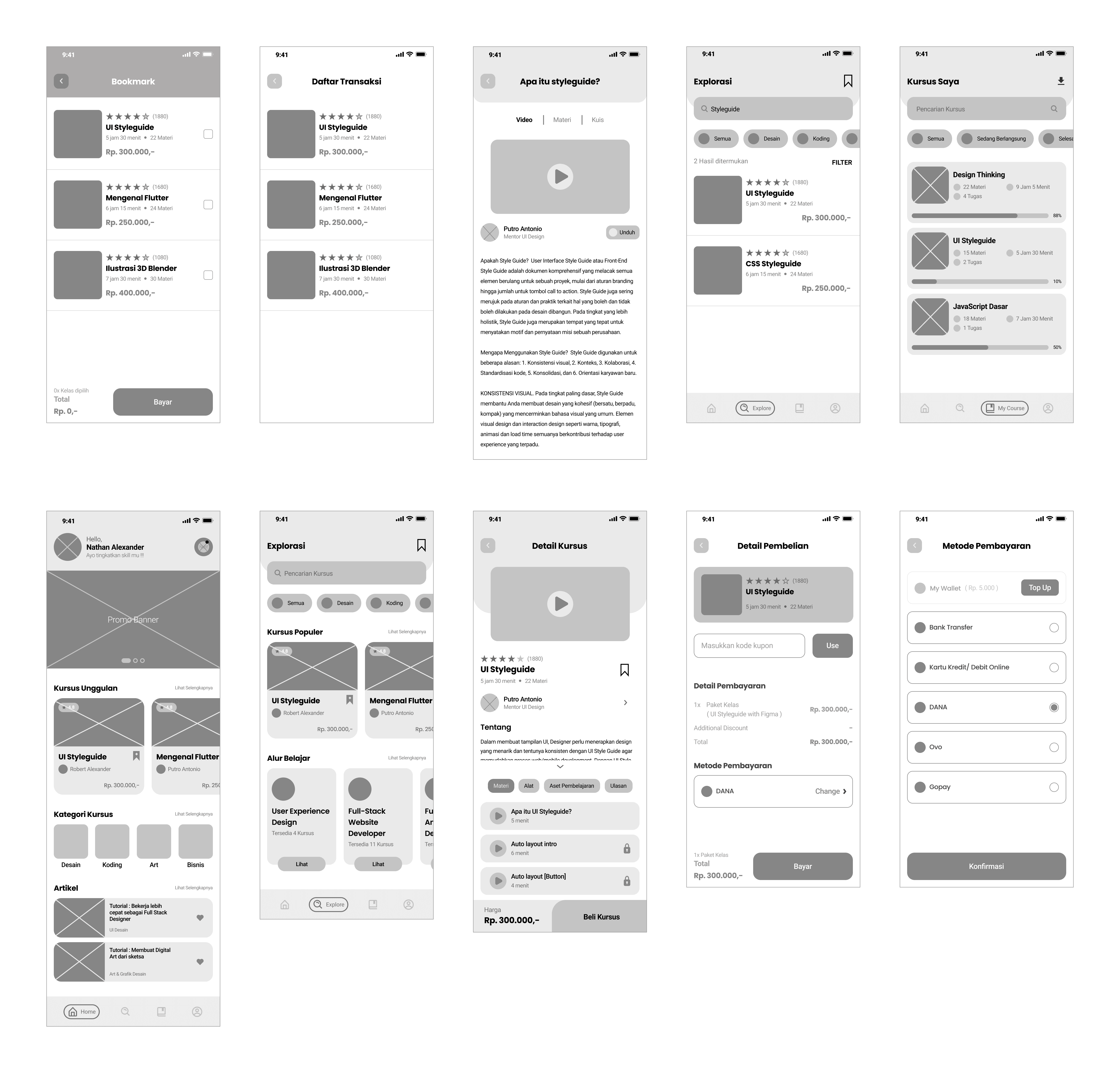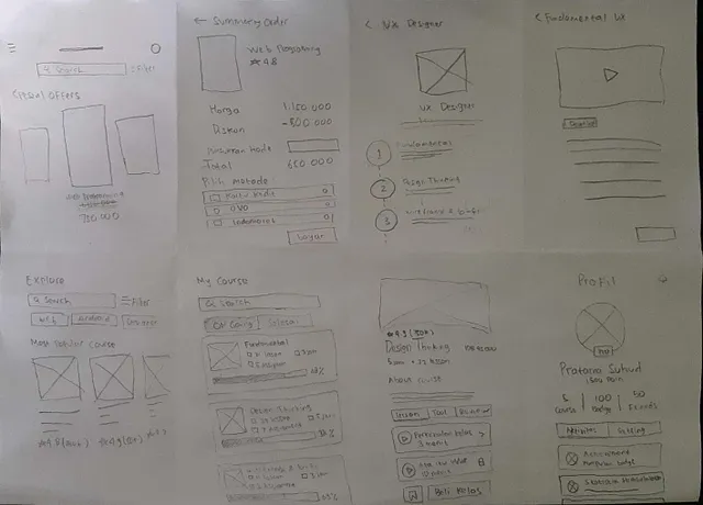 After completing the user flow creation, the next step is to create a wireframe. Wireframe is a design of a user interface that is made using only gray scale colors. This wireframe will be the basis of making the User Interface.